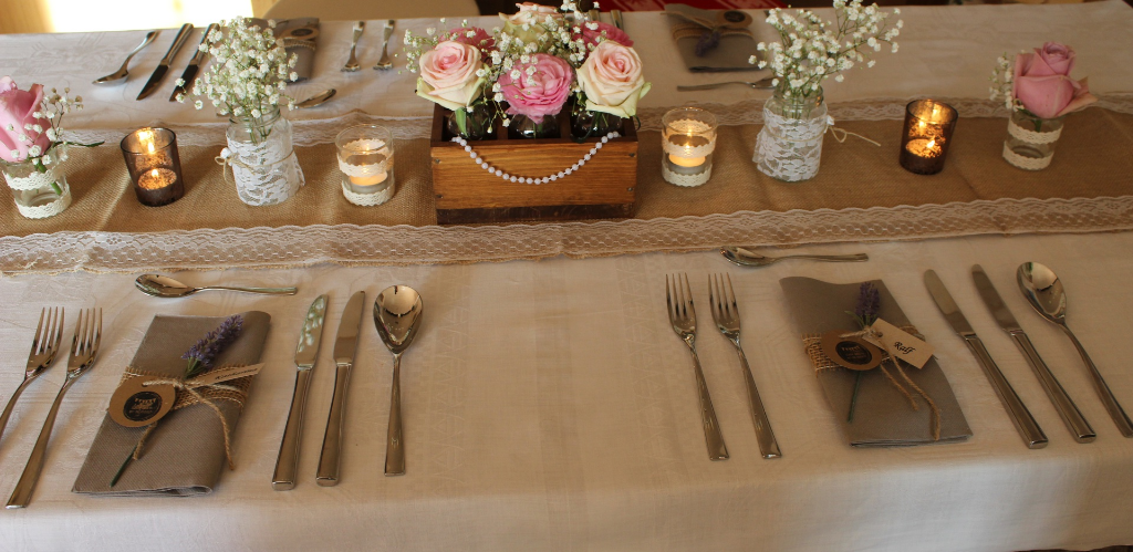 - Dekoration der Tische am Tag vor der Hochzeit oder am Hochzeitstag